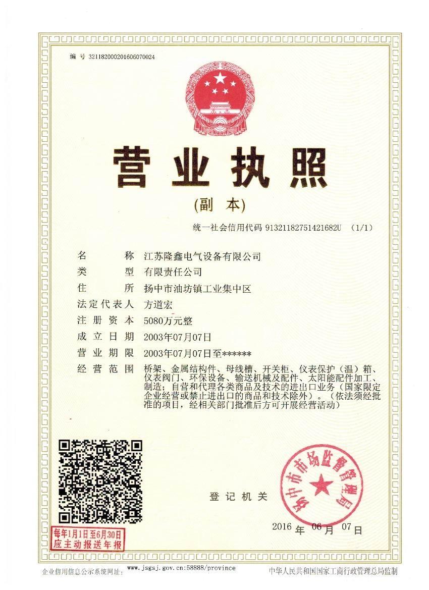 江蘇隆鑫電氣設備有限公司是集科研、設計、制造、安裝、技、工、貿(mào)一體化的專業(yè)生產(chǎn)型企業(yè),是工業(yè)管道閥門、儀表管閥配件、母線槽、匯線橋架、玻璃鋼制品的專業(yè)生產(chǎn)廠家。